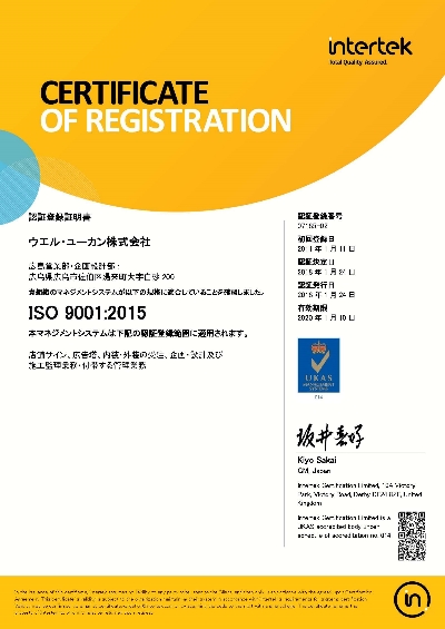品質マネジメントシステムにおいて、ISO 9001:2015の認証更新をいたししました。
